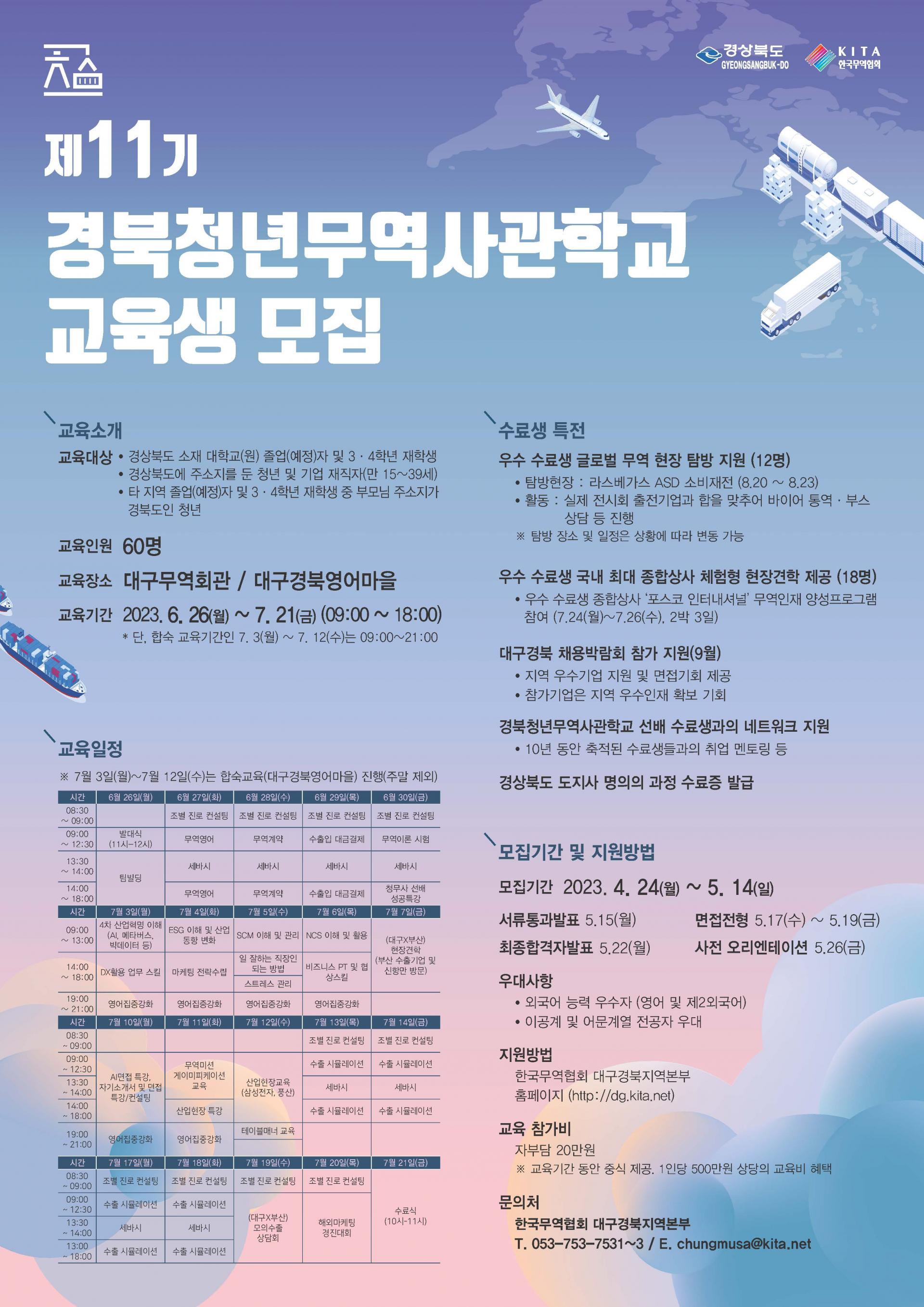 ㅇ 교육장소 : 대구무역회관, 대구경북영어마을(합숙교육(7.3~7.12))
